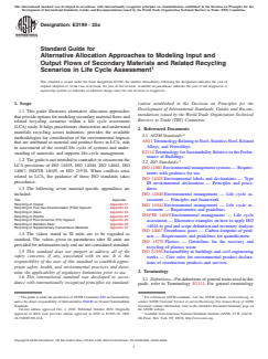 ASTM E3199-22a, titled "Standard Guide for Alternative Allocation Approaches to Modeling Input and Output Flows of Secondary Materials and Related Recycling Scenarios in Life Cycle Assessment," provides comprehensive guidance for life cycle assessment (LCA) practitioners on modeling secondary material flows and recycling scenarios. Issued by ASTM International, this standard is designed to help organizations evaluate potential environmental impacts linked to the recycling and reuse of materials across product life cycles. By illustrating alternative allocation methodologies, the standard offers practitioners a framework for consistent and transparent assessment and reporting as well as support for sustainability initiatives and compliance with ISO standards.