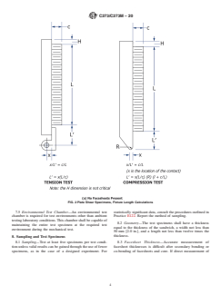8.2 Geometry—The test specimens shall have a thickness equal to the thickness of the sandwich, a width not less than 50 mm