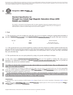 REDLINE ASTM A801-21 - Standard Specification for Wrought Iron-Cobalt High Magnetic Saturation Alloys (UNS R30005 and K92650)