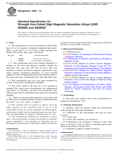 ASTM A801-21 - Standard Specification for Wrought Iron-Cobalt High Magnetic Saturation Alloys (UNS R30005 and K92650)