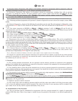 Corrosion Potential Measurement: Defines a systematic procedure for measuring the corrosion potential of aluminum alloys using a sodium chloride solution with hydrogen peroxide to maintain cathodic reactant supply. High-impedance voltmeters and saturated calomel electrodes are used for precise readings.