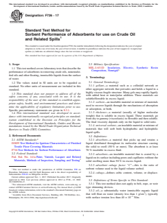 ASTM F726-17 - Standard Test Method for Sorbent Performance of Adsorbents for use on Crude Oil and Related Spills