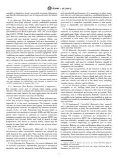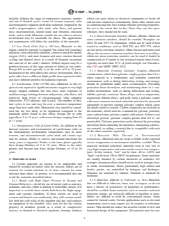 SIGNIFICANCE AND USE 3.1 This practice is a guideline for proper materials and process selection and application. The specific application of these guidelines must take into account contractual agreements, functional performance requirements for particular programs and missions, and the actual environments and exposures anticipated for each material and the equipment in which the materials are used. Guidelines are not replacements for careful and informed engineering judgment and evaluations and all possible performance and design constraints and requirements cannot be foreseen. This practice is limited to unmanned systems and unmanned or external portions of manned systems, such as the Space Station. Generally, it is applicable to systems in low earth orbit, synchronous orbit, and interplanetary missions. Although many of the suggestions and cautions are applicable to both unmanned and manned spacecraft, manned systems have additional constraints and requirements for crew safety which may not be addressed adequately in unmanned designs. Because of the added constraints and concerns for human-rated systems, these systems are not addressed in this practice. SCOPE 1.1 The purpose of this practice is to aid engineers, designers, quality and reliability control engineers, materials specialists, and systems designers in the selection and control of materials and processes for spacecraft, external portion of manned systems, or man-tended systems. Spacecraft systems are very different from most other applications. Space environments are very different from terrestrial environments and can dramatically alter the performance and survivability of many materials. Reliability, long life, and inability to repair defective systems (or high cost and difficultly of repairs for manned applications) are characteristic of space applications. This practice also is intended to identify materials processes or applications that may result in degraded or unsatisfactory performance of systems, subsystems, or components. Examples of successful and unsuccessful materials selections and uses are given in the appendices. 1.2 This international standard was developed in accordance with internationally recognized principles on standardization established in the Decision on Principles for the Development of International Standards, Guides and Recommendations issued by the World Trade Organization Technical Barriers to Trade (TBT) Committee.