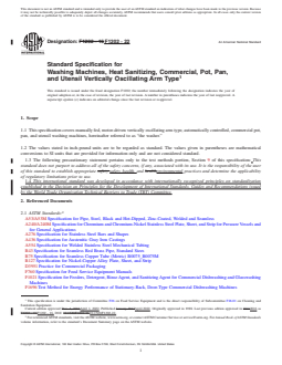 REDLINE ASTM F1202-22 - Standard Specification for Washing Machines, Heat Sanitizing, Commercial, Pot, Pan, and Utensil Vertically Oscillating Arm Type