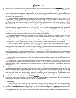 4.1 For many structural ceramic components in service, their use is often limited by lifetimes that are controlled by a process of SCG. This test method provides the empirical parameters for appraising the relative SCG susceptibility of ceramic materials under specified environments. Furthermore, this test method may establish the influences of processing variables and composition on SCG as well as on strength behavior of newly developed or existing materials, thus allowing tailoring and optimizing material processing for further modification. In summary, this test method may be used for material development, quality control, characterization, and limited design data generation purposes. The conventional analysis of constant stress rate testing is based on a number of critical assumptions, the most important of which are listed in the next paragraphs.