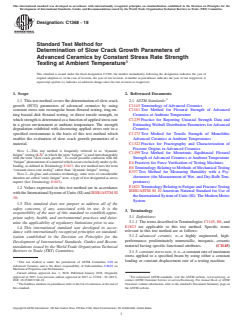 ASTM C1368-18 - Standard Test Method for Determination of Slow Crack Growth Parameters of Advanced Ceramics by Constant Stress Rate Strength Testing at Ambient Temperature