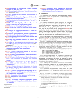 1.4 This classification system and subsequent line callout (specifications) are intended to provide a means of calling out plastic materials used in the fabrication of end items or parts. It is not intended for the selection of materials. Material selection should be made by those having expertise in the plastic field after careful consideration of the design and the performance requirements of the part, the environment to which it will be exposed, the fabrication process to be employed, the costs involved, and the inherent properties of the material other than those covered by this classification system.