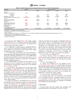 ASTM D6448-16(2022) is a technical specification published by ASTM International. Its full title is "Standard Specification for Industrial Burner Fuels from Used Lubricating Oils". This standard covers: ABSTRACT This specification covers four grades of fuel oil made in whole or in part with hydrocarbon-based used or reprocessed lubricating oil or functional fluids, such as preservative and hydraulic fluids. Grades RFO4, RFO5L, RFO5H, and RFO6 are of increasing viscosity and are intended for use in various types of fuel-oil-burning industrial equipment under various climatic and operating conditions, and are not intended for use in residential heaters, small commercial boilers, combustion engines, or marine applications. Detailed requirements for each grade of lubricating oil shall be tested accordingly, and are as follows: viscosity; flash point; water and sediment content; pour point; density; ash content; sulphur content; extracted pH; and gross heating value. SCOPE 1.1 This specification covers four grades of fuel oil made in whole or in part with hydrocarbon-based used or reprocessed lubricating oil or functional fluids, such as preservative and hydraulic fluids. The four grades of fuel are intended for use in various types of fuel-oil-burning industrial equipment under various climatic and operating conditions. These fuels are not intended for use in residential heaters, small commercial boilers, combustion engines, or marine applications, 1.1.1 Grades RFO4, RFO5L, RFO5H, and RFO6 are used lubricating oil blends, with or without distillate or residual fuel oil, or both, of increasing viscosity and are intended for use in industrial burners equipped to handle these types of recycled fuels. Note 1: For information on the significance of the terminology and test methods used in this specification, see Appendix X1. 1.2 This specification is for use in contracts for the purchase of fuel oils derived from used lubricating oil and for the guidance of consumers of such fuels. This specification does not address the frequency with which any particular test must be run. 1.3 Nothing in this specification shall preclude observance of national or local regulations, which can be more restrictive. In some jurisdictions, used oil is considered a hazardous waste and fuels from used oil are required to meet certain criteria before use as a fuel. Note 2: For United States federal requirements imposed on used oil generators, transporters and transfer facilities, reprocessors, marketers, and burners, see 40 CFR 279. Note 3: The generation and dissipation of static electricity can create problems in the handling of distillate burner fuel oils. For more information on the subject, see Guide D4865. 1.4 The values stated in SI units are to be regarded as standard; non-SI units, when given, are for information only. 1.5 This international standard was developed in accordance with internationally recognized principles on standardization established in the Decision on Principles for the Development of International Standards, Guides and Recommendations issued by the World Trade Organization Technical Barriers to Trade (TBT) Committee.