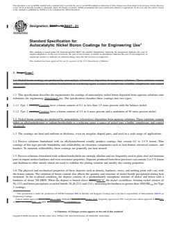 1.1 This specification describes the requirements for coatings of autocatalytic nickel boron deposited from aqueous solutions onto substrates for engineering (functional) use. The specification classifies these coatings into two types: