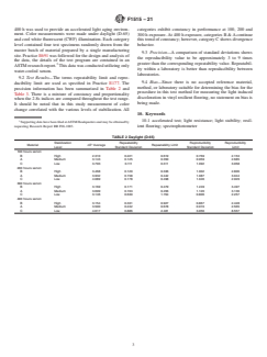 ASTM F1515-21 is a standard published by ASTM International. Its full title is "Standard Test Method for Measuring Light Stability of Resilient Flooring by Color Change". This standard covers: SIGNIFICANCE AND USE 4.1 Resilient floor covering is made by fusing polymer materials under heat or pressure, or both, in various manufacturing and decorating processes. The polymer material may be compounded with plasticizers, stabilizers, fillers, and other ingredients for processability and product performance characteristics. The formulation of the compound can be varied considerably depending on the desired performance characteristics and methods of processing. 4.2 Light stability, which is resistance to discoloration from light, is a basic requirement for functional use. 4.3 This test method provides a means of measuring the amount of color change in flooring products when subjected to accelerated light exposure over a period of time (functional use of the flooring product). 4.4 This test method specifies that a sample is measured by a spectrophotometer and expressed in ΔE* units before and after accelerated light exposure. Note 2: It is the intent that this test method be used for testing light stability performance properties to be referenced in resilient flooring specifications. SCOPE 1.1 This test method covers a procedure for determining the resistance of resilient floor covering to color change from exposure to light over a specified period of time. 1.2 This standard does not purport to address all of the safety concerns, if any, associated with its use. It is the responsibility of the user of this standard to establish appropriate safety, health, and environmental practices and determine the applicability of regulatory limitations prior to use. 1.3 This international standard was developed in accordance with internationally recognized principles on standardization established in the Decision on Principles for the Development of International Standards, Guides and Recommendations issued by the World Trade Organization Technical Barriers to Trade (TBT) Committee.