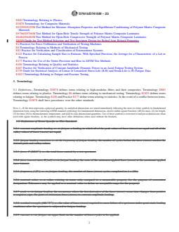ASTM D7615/D7615M-23 is a standard published by ASTM International. Its full title is "Standard Practice for Open-Hole Fatigue Response of Polymer Matrix Composite Laminates". This standard covers: SIGNIFICANCE AND USE 5.1 Refer to Guide D8509. SCOPE 1.1 This practice provides instructions for modifying static open-hole tensile and compressive strength test methods to determine the fatigue behavior of composite materials subjected to cyclic tensile or compressive forces, or both. The composite material forms are limited to continuous-fiber reinforced polymer matrix composites in which the laminate is both symmetric and balanced with respect to the test direction. The range of acceptable test laminates and thicknesses are described in 8.2. 1.2 This practice supplements Test Methods D5766/D5766M and D6484/D6484M with provisions for testing specimens under cyclic loading. Several important test specimen parameters, for example fatigue force (stress) ratio, are not mandated by this practice; however, repeatable results require that these parameters be specified and reported. 1.3 This practice is limited to test specimens subjected to constant amplitude uniaxial loading, where the machine is controlled so that the test specimen is subjected to repetitive constant amplitude force (stress) cycles. Either engineering stress or applied force may be used as a constant amplitude fatigue variable. The repetitive loadings may be tensile, compressive, or reversed, depending upon the test specimen and procedure utilized. 1.4 The values stated in either SI units or inch-pound units are to be regarded separately as standard. The values stated in each system are not necessarily exact equivalents; therefore, to ensure conformance with the standard, each system shall be used independently of the other, and values from the two systems shall not be combined. 1.4.1 Within the text the inch-pound units are shown in brackets. 1.5 This standard does not purport to address all of the safety concerns, if any, associated with its use. It is the responsibility of the user of this standard to establish appropriate safety, health, and environmental practices and determine the applicability of regulatory limitations prior to use. 1.6 This international standard was developed in accordance with internationally recognized principles on standardization established in the Decision on Principles for the Development of International Standards, Guides and Recommendations issued by the World Trade Organization Technical Barriers to Trade (TBT) Committee.