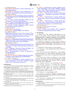 SIGNIFICANCE AND USE 5.1 This guide references requirements that are intended to control the quality of NDT data. The purpose of this guide, therefore, is not to establish acceptance criteria and therefore approve composite materials or components for aerospace service. 5.2 Following the discretion of the cognizant engineering organization, NDT for fracture control of composite and bonded materials should follow additional guidance described in MIL-HDBK-6870, NASA-STD-(I)-5019, or MSFC-RQMT-3479, or a combination thereof, as appropriate (not covered in this guide). 5.3 Certain procedures referenced in this guide are written so they can be specified on the engineering drawing, specification, purchase order, or contract, for example, Practice E1742/E1742M (Radiography). 5.4 Acceptance Criteria—Determination about whether a composite material or component meets acceptance criteria and is suitable for aerospace service should be made by the cognizant engineering organization. When examinations are performed in accordance with the referenced documents in this guide, the engineering drawing, specification, purchase order, or contract should indicate the acceptance criteria. 5.4.1 Accept/reject criteria should consist of a listing of the expected kinds of imperfections and the rejection level for each. 5.4.2 The classification of the articles under test into zones for various accept/reject criteria should be determined from contractual documents. 5.4.3 Rejection of Composite Articles—If the type, size, or quantities of defects are found to be outside the allowable limits specified by the drawing, purchase order, or contract, the composite article should be separated from acceptable articles, appropriately identified as discrepant, and submitted for material review by the cognizant engineering organization, and dispositioned as (1) acceptable as is, (2) subject to further rework or repair to make the materials or component acceptable, or (3) scrapped when required by contractu... SCOPE 1.1 This guide provides information to help engineers select appropriate nondestructive testing (NDT) methods to characterize aerospace polymer matrix composites (PMCs). This guide does not intend to describe every inspection technology. Rather, emphasis is placed on established NDT methods that have been developed into consensus standards and that are currently used by industry. Specific practices and test methods are not described in detail, but are referenced. The referenced NDT practices and test methods have demonstrated utility in quality assurance of PMCs during process design and optimization, process control, after manufacture inspection, in-service inspection, and health monitoring. 1.2 This guide does not specify accept-reject criteria and is not intended to be used as a means for approving composite materials or components for service. 1.3 This guide covers the following established NDT methods as applied to PMCs: Acoustic Emission (AE, Section 7); Computed Tomography (CT, Section 8); Leak Testing (LT, Section 9); Radiographic Testing, Computed Radiography, Digital Radiography, and Radioscopy (RT, CR, DR, RTR, Section 10); Shearography (Section 11); Strain Measurement (Contact Methods, Section 12); Thermography (Section 13); Ultrasonic Testing (UT, Section 14); and Visual Testing (VT, Section 15). 1.4 The value of this guide consists of the narrative descriptions of general procedures and significance and use sections for established NDT practices and test methods as applied to PMCs. Additional information is provided about the use of currently active standard documents (an emphasis is placed on applicable standard guides, practices, and test methods of ASTM Committee E07 on Nondestructive Testing), geometry and size considerations, safety and hazards considerations, and information about physical reference standards. 1.5 To ensure proper use of the referenced standard documents, there are recogni...