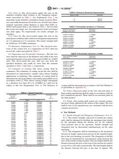 - Specifies test methods for tensile strength, elongation, resistivity, and the continuity of silver coating.