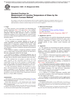 The ASTM C829-81(2022) standard is an essential resource for anyone involved in glass manufacturing, quality assurance, or material science research. By providing standardized practices for measuring the liquidus temperature of glass using the gradient furnace method, it helps ensure product consistency, safety, and optimal performance. Compliance with this ASTM standard facilitates efficient glass processing, supports technological innovation, and promotes international regulatory confidence in glass products.
