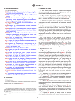 The selection and application of surface geophysical methods are often supported by additional ASTM standards and references, which offer detailed procedures, terminology, and best practices. Key referenced standards include: