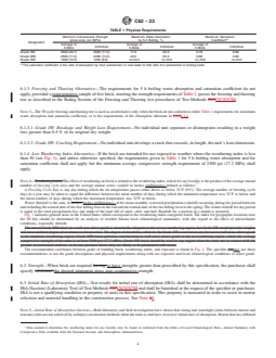 NOTE 3—The 50 cycle freezing and thawing test is used as an alternative only when the brick do not conform to either Table 1 requirements for maximum