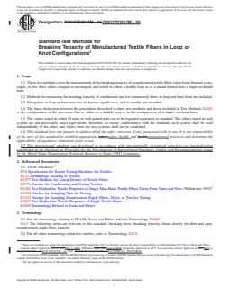 REDLINE ASTM D3217/D3217M-20 - Standard Test Methods for Breaking Tenacity of Manufactured Textile Fibers in Loop or Knot Configurations