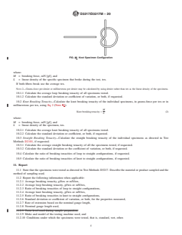 - Reporting Requirements: Specifies information to be included in test reports, such as average breaking tenacity, ratios of loop/knot to straight tenacity, standard deviation, test conditions, and test equipment details.