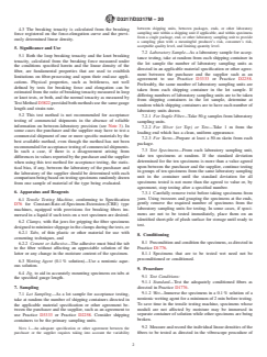 - Sampling and Preparation: Defines requirements for random sampling, specimen preparation, and mounting, including detailed handling for different fiber forms (staple, tow, yarn).