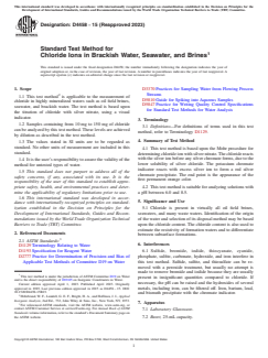 ASTM D4458-15(2023) - Standard Test Method for Chloride Ions in Brackish Water, Seawater, and Brines