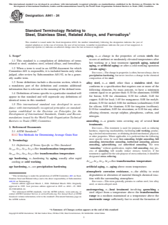 SCOPE 1.1 This standard is a compilation of definitions of terms related to steel, stainless steel, related alloys, and ferroalloys. 1.2 When a term is used in an ASTM document for which Committee A01 is responsible, it is included herein only when judged, after review by Subcommittee A01.92, to be a generally usable term. 1.3 Some definitions include a discussion section, which is a mandatory part of the definition and contains additional information that is relevant to the meaning of the defined term. 1.4 Definitions of terms specific to a particular standard will appear in that standard and will supersede any definitions of identical terms in this standard. 1.5 This international standard was developed in accordance with internationally recognized principles on standardization established in the Decision on Principles for the Development of International Standards, Guides and Recommendations issued by the World Trade Organization Technical Barriers to Trade (TBT) Committee.