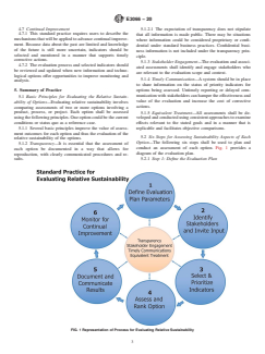 ASTM E3066-20 is a standard published by ASTM International. Its full title is "Standard Practice for Evaluating Relative Sustainability Involving Energy or Chemicals from Biomass". This standard covers: SCOPE 1.1 This standard practice provides a science-based methodology for evaluating the relative sustainability of options involving energy or chemicals derived from biomass. Options may involve products, processes, or projects. 1.2 The methodology includes setting goals and objectives, identifying stakeholders, selecting appropriate indicators, and evaluating the relative sustainability of options where at least one option is available from biomass. 1.3 The objectives are to facilitate fair comparison of options, focus efforts on practical indicators reflecting stakeholder priorities, and support continual improvement for more sustainable outcomes. 1.4 The purpose of this standard practice is not to declare something as sustainable or not sustainable but to help users assess, compare, and rank options based on specific goals and objectives. 1.5 This standard does not purport to address all of the safety concerns, if any, associated with its use. It is the responsibility of the user of this standard to establish appropriate safety, health, and environmental practices and determine the applicability of regulatory limitations prior to use. 1.6 This international standard was developed in accordance with internationally recognized principles on standardization established in the Decision on Principles for the Development of International Standards, Guides and Recommendations issued by the World Trade Organization Technical Barriers to Trade (TBT) Committee.