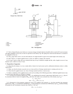 - Describes standardized apparatus, including a density cup, applied mass set, dial indicator, and other accessories.