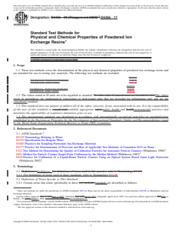 1.1 These test methods cover the determination of the physical and chemical properties of powdered ion exchange resins and