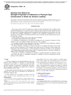 ASTM D906-20 - Standard Test Method for Strength Properties of Adhesives in Plywood Type Construction in Shear by Tension Loading