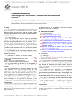 ASTM D3923-23 - Standard Practices for Detecting Leaks in Reverse Osmosis and Nanofiltration Devices