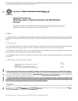 1.1 These practices cover detecting leaks in which there is a direct communication between the feed or concentrate, or both, and the permeate. Several types of leaks are possible with the various configurations of reverse-osmosis (RO) and nanofiltration (NF) devices.