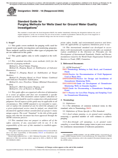 ASTM D6452-18(2023) - Standard Guide for Purging Methods for Wells Used for Ground Water Quality Investigations