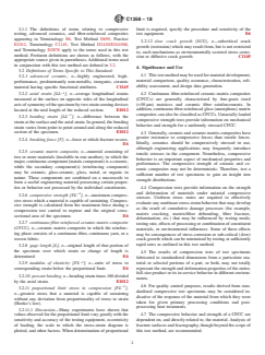 - Compressive Strength Testing: Provides detailed methodology for testing compressive properties of continuous fiber-reinforced ceramics using monotonic (non-reversing, nonstop loading) tests.
