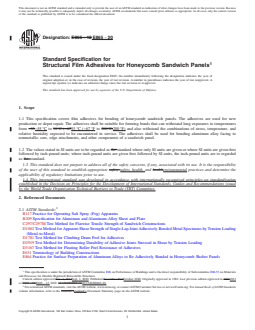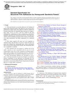 Keywords: ASTM E865-20, honeycomb sandwich panels, structural film adhesives, aluminum bonding, depot repair, aerospace adhesives, sandwich panel construction, film adhesive specification, durability testing, building standards.