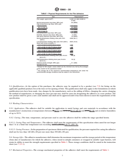 5.7 Mechanical Properties—The average mechanical properties of the adhesive shall meet the requirements of Table 1.