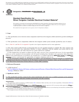 1.1 This specification covers electrical contact components made from silver-tungsten carbide materials by powder metallurgical