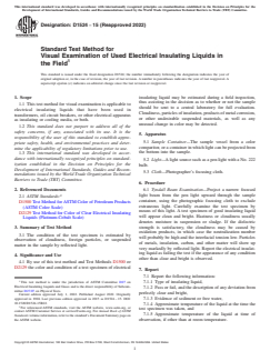 ASTM D1524-15(2022) - Standard Test Method for Visual Examination of Used Electrical Insulating Liquids in the Field