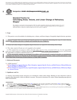 REDLINE ASTM C1407-23 - Standard Practice for Calculating Areas, Volume, and Linear Change of Refractory Shapes