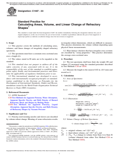 ASTM C1407-23 - Standard Practice for Calculating Areas, Volume, and Linear Change of Refractory Shapes