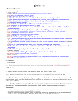 - ASTM D4000: General classification system for specifying plastic materials, which is referenced for more detailed suffix tables and additional characteristic requirements in ASTM D4067-23.