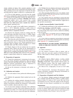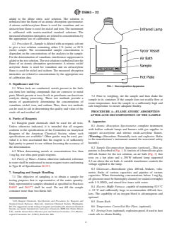 1.3 Procedure B, Sections 15–20—Flame AAS is used to analyze a sample diluted with an organic solvent for the determination of Ni, V, and Na. This test method uses oil-soluble metals for calibration to determine dissolved metals and does not purport to quantitatively determine nor detect insoluble particulates. Hence, this test method may underestimate the metal content, especially sodium, present as inorganic sodium salts.