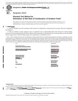 1.3 The net heat of combustion can also be estimated by Test Methods D1405 or D3338. Test Method D1405 requires calculation of one of four equations dependent on the fuel type with the precision equivalent to that of this test method, whereas Test ...