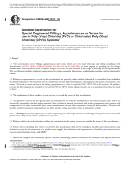 - Applies to special engineered fittings, appurtenances, and valves for use with PVC/CPVC pipes compliant with ASTM D1785, D2241, D2846/D2846M, F441/F441M, or F442/F442M.