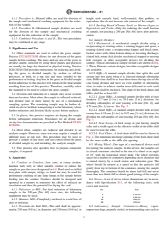 - Equipment Requirements: Specifies apparatus such as crushers, grinders, riffles, mechanical sample dividers, mixing devices, and appropriate sample storage containers.