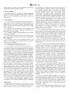 SIGNIFICANCE AND USE 5.1 The term duckweed commonly refers to members of the family Lemnaceae. This family has many species world-wide in 4 genera. This guide is designed for toxicity testing with one particular clone of one species of duckweed that has been extensively studied, Lemna gibba G3, although other species such as Lemna minor or Spirodela spp. can probably also be tested using the procedures described herein. 5.2 Duckweeds are widespread, free-floating aquatic plants, ranging in the world from tropical to temperate zones. Duckweeds are a source of food for waterfowl and small animals and provide food, shelter, and shade for fish. The plants also serve as physical support for a variety of small invertebrates. Duckweed is fast growing and reproduces rapidly compared with other vascular plants (1).3 Under conditions favorable for its growth, it can multiply quickly and form a dense mat in lakes, ponds, and canals, primarily in fresh water, but also in estuaries. It also grows well in effluents of wastewater treatment plants and has been suggested as a means of treating wastewaters (2). A dense mat of duckweed can block sunlight and aeration and cause fish kills (3). 5.3 Duckweed is small enough that large laboratory facilities are not necessary, but large enough that effects can be observed visually. 5.4 Because duckweed is a floating macrophyte, it might be particularly susceptible to surface active and hydrophobic chemicals that concentrate at the air-water interface. Results of duckweed tests on such chemicals, therefore, might be substantially different from those obtained with other aquatic species. 5.5 Results of toxicity tests with duckweed might be used to predict effects likely to occur on duckweed in field situations as a result of exposure under comparable conditions. 5.6 Results of tests with duckweed might be used to compare the toxicities of different materials and to study the effects of various environmental factors on results of such tests. 5.7... SCOPE 1.1 This guide describes procedures for obtaining laboratory data concerning the adverse effects of a text material added to growth medium on a certain species of duckweed (Lemna gibba G3) during a 7-day exposure using the static technique. These procedures will probably be useful for conducting toxicity tests with other species of duckweed and other floating vascular plants, although modifications might be necessary. 1.2 Special needs or circumstances might also justify modification of this standard. Although using appropriate procedures is more important than following prescribed procedures, results of tests conducted using unusual procedures are not likely to be comparable to results of many other tests. Comparison of results obtained using modified and unmodified versions of these procedures might provide useful information concerning new concepts and procedures for conducting tests with duckweed. 1.3 The procedures in this guide are applicable to most chemicals, either individually or in formulations, commercial products, or known mixtures. With appropriate modifications these procedures can be used to conduct tests on temperature and pH and on such other materials as aqueous effluents (see also Guide E1192), leachates, oils, particulate matter, sediments and surface waters. These procedures do not specifically address effluents because to date there is little experience using duckweeds in effluent testing and such tests may pose problems with acclimation of the test organisms to the receiving water. Static tests might not be applicable to materials that have a high oxygen demand, are highly volatile, are rapidly biologically or chemically transformed in aqueous solution, or are removed from test solutions in substantial quantities by the test chambers or organisms during the test. 1.4 Results of toxicity tests performed using the procedures in this guide should usually be reported in terms of the 7-day IC5...