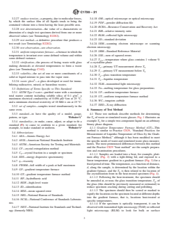 SIGNIFICANCE AND USE 5.1 This procedure can be used for (but is not limited to) the following applications: (1) support glass formulation development to make sure that processing criteria are met, (2) support production (for example, processing or troubleshooting), and (3) support model validation. SCOPE 1.1 These test methods cover procedures for determining the liquidus temperature (TL) of nuclear waste, mixed nuclear waste, simulated nuclear waste, or hazardous waste glass in the temperature range from 600 °C to 1600 °C. This test method differs from Practice C829 in that it employs additional methods to determine TL. TL is useful in waste glass plant operation, glass formulation, and melter design to determine the minimum temperature that must be maintained in a waste glass melt to make sure that crystallization does not occur or is below a particular constraint, for example, 1 volume % crystallinity or T1%. As of now, many institutions studying waste and simulated waste vitrification are not in agreement regarding this constraint (1).2 1.2 Three methods are included, differing in (1) the type of equipment available to the analyst (that is, type of furnace and characterization equipment), (2) the quantity of glass available to the analyst, (3) the precision and accuracy desired for the measurement, and (4) candidate glass properties. The glass properties, for example, glass volatility and estimated TL, will dictate the required method for making the most precise measurement. The three different approaches to measuring TL described here include the following: Gradient Temperature Furnace Method (GT), Uniform Temperature Furnace Method (UT), and Crystal Fraction Extrapolation Method (CF). This procedure is intended to provide specific work processes, but may be supplemented by test instructions as deemed appropriate by the project manager or principle investigator. The methods defined here are not applicable to glasses that form multiple immiscible liquid phases. Immiscibility may be detected in the initial examination of glass during sample preparation (see 9.3). However, immiscibility may not become apparent until after testing is underway. 1.3 The values stated in SI units are to be regarded as standard. No other units of measurement are included in this standard. 1.4 This standard does not purport to address all of the safety concerns, if any, associated with its use. It is the responsibility of the user of this standard to establish appropriate safety, health, and environmental practices and determine the applicability of regulatory limitations prior to use. 1.5 This international standard was developed in accordance with internationally recognized principles on standardization established in the Decision on Principles for the Development of International Standards, Guides and Recommendations issued by the World Trade Organization Technical Barriers to Trade (TBT) Committee.