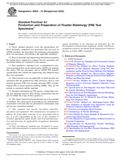 ASTM B925-15(2022) - Standard Practices for Production and Preparation of Powder Metallurgy (PM) Test Specimens