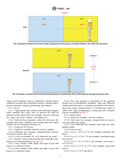 4.2.1 Static is when the environment is similar throughout the test apparatus. For example, there are minor fluctuations in temperature throughout the apparatus as shown in Fig. 1 and Fig. 2. Dynamic is when the environment significantly differs within the test apparatus. For example, when the temperature changes between repetitions as shown in Fig. 3. Transitional is when the environment significantly differs in different areas within the test apparatus as shown in Fig. 4. The intent here is to not give specific guidance, but to provide a high-level classification of a particular set of environmental conditions. If environment consistency is dynamic or transitional, or both, a report form (see Section 7) for each unique set of environmental conditions should be completed.