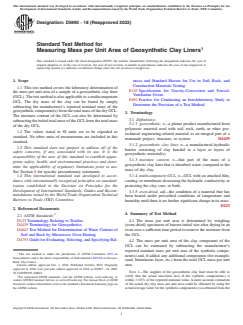 ASTM D5993-18(2022) - Standard Test Method for Measuring Mass per Unit Area of Geosynthetic Clay Liners