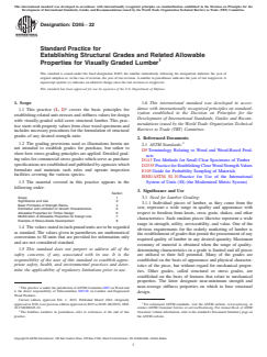 ASTM D245-22: Standard Practice for Establishing Structural Grades and Related Allowable Properties for Visually Graded Lumber provides a foundational methodology for defining structural grades and allowable mechanical properties of solid sawn lumber, based on visual grading. Developed by ASTM Committee D07, this standard emphasizes consistent evaluation and classification of lumber quality, allowing for reliable performance in construction and structural applications. It guides agencies and manufacturers in assessing the visual features of lumber-such as knots, grain slope, and other defects-that directly impact strength and serviceability.